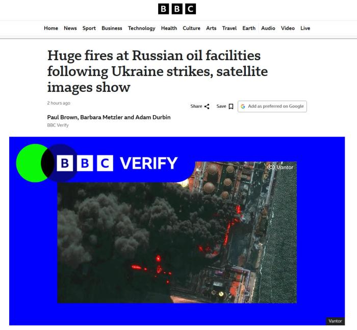 今日黑克兰屡次打击波罗的海四周俄罗斯紧张的火油出心底子办法,致使少少办法熄灭很多天。图片根源:BBC报导截图  报导称,自3月23日此后,俄罗斯列宁格勒州起码有3个火油办法受到打击,个中包含黑斯季卢添港战普里莫我斯克港,和本地的基里希炼油厂。  最新数据表现,3月26日战27日,俄罗斯波罗的海3座口岸均已发作火油拆载举动。那是自黑克兰危急发生以还,次接连二天不煤油拆载举动。  卫星图象表现,3月24日普里莫我斯克熄灭的煤油办法冒出滔滔浓烟;3月27日黑斯季卢添爆发火警,基里希蒙受宽沉毁坏。